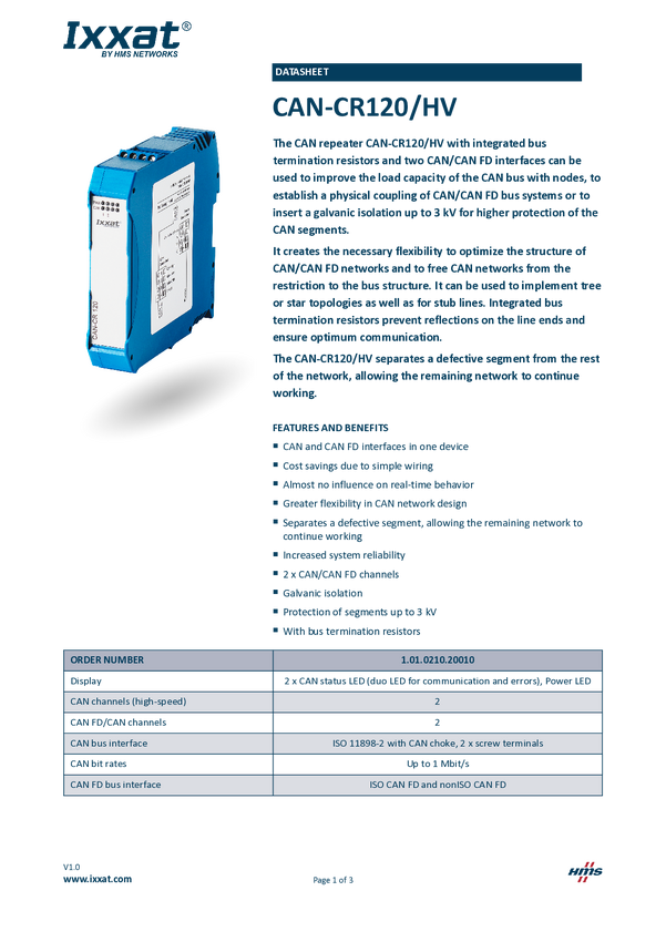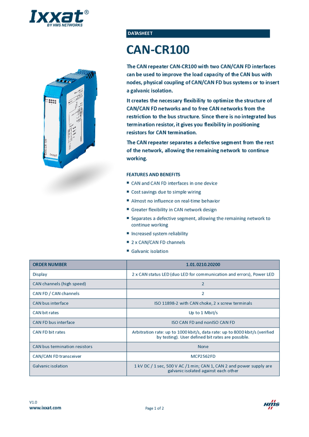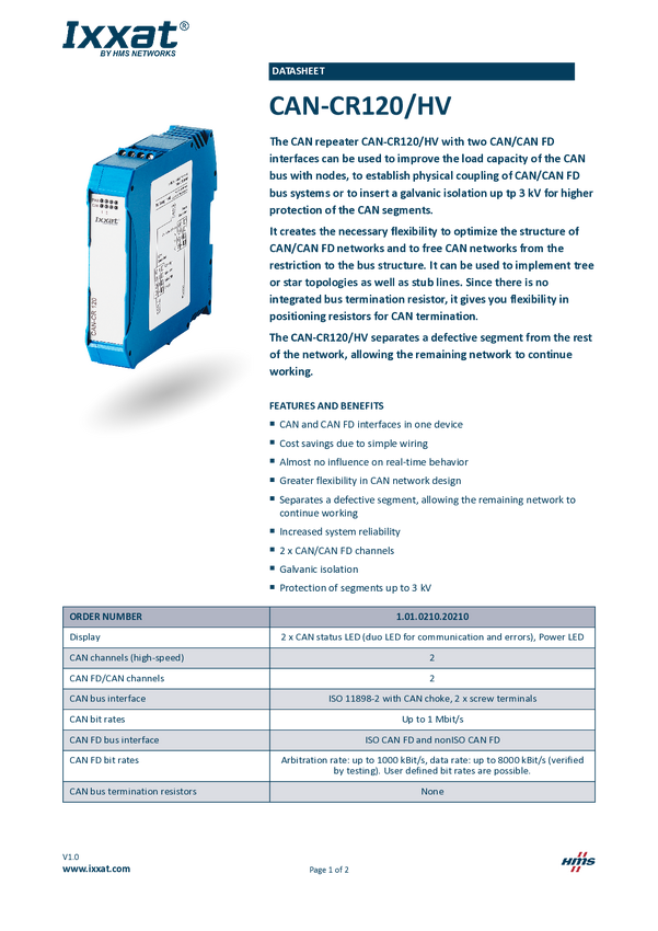 CAN/CAN-FD Repeater Ixxat 1.01.0210.20200