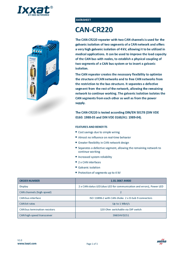 Repeater CAN Ixxat 1.01.0067.44300 24 V/DC