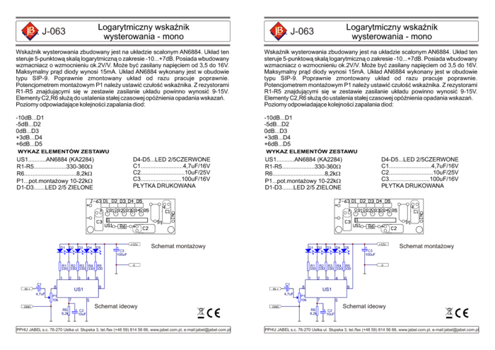 J-064 Logarytmiczny wskaźnik wysterowania stereo - zestaw do montażu