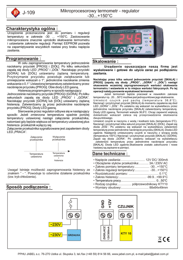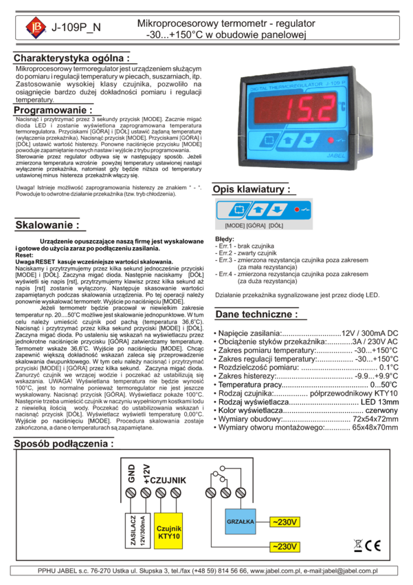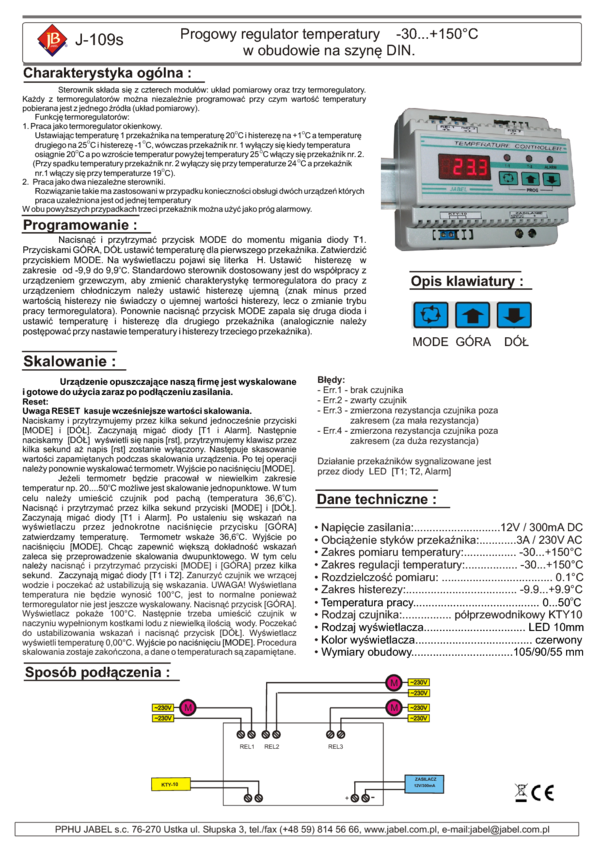 J-109 Termoregulator mikroprocesorowy -30°C … +150°C
