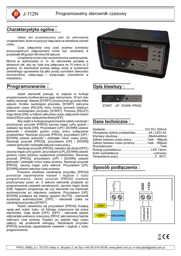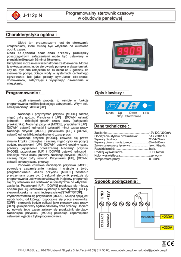 J-112P Programowalny sterownik czasowy (obudowa panelowa)