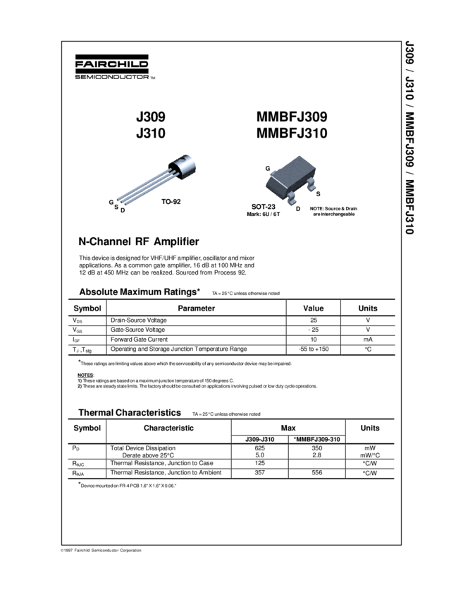 Tranzystor; J310 / U310; N-JFET; 60mA; 25V; 0,625W; 450MHz; VHF; TO92; THT; FAIRCHILD; RoHS
