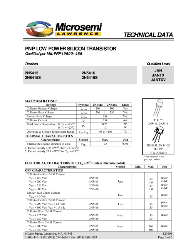 LDS-0305 PNP Silicon Low-Power Transistor 2N5415_2N5416