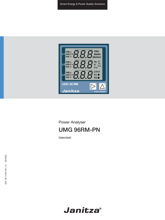Analizator sieci Janitza UMG 96-PQ-L, 90-277V Kalibracja (ISO)
