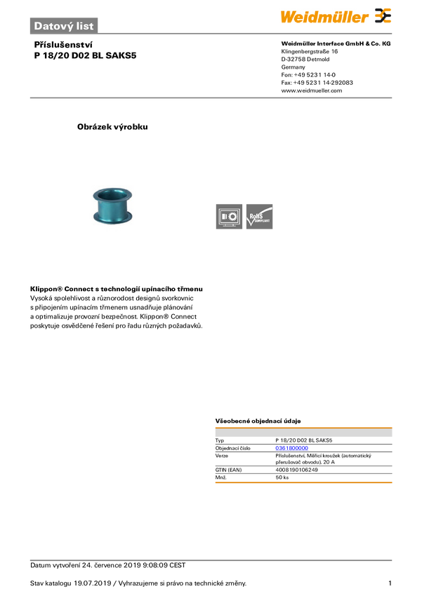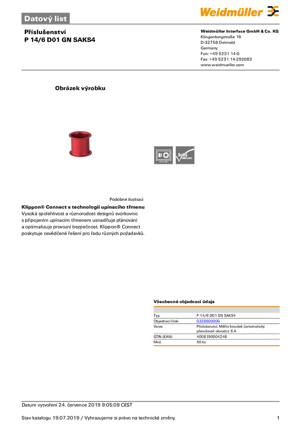 Wkładka jarzma Weidmüller P 14/10 D01 RT SAKS4 0328700000, 50 szt.