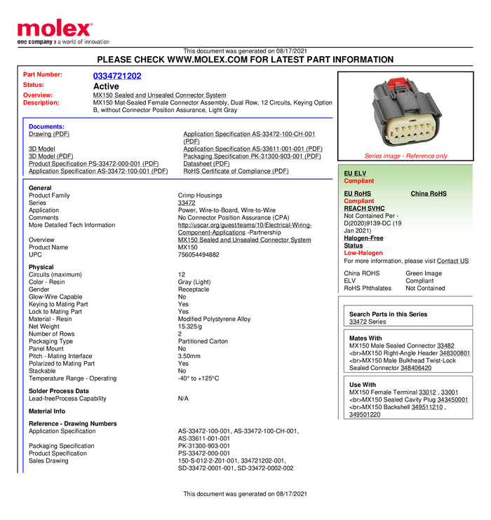 Złącze 334721202 Molex MOL Automotive jasnoszary Molex Zawartość: 1 szt.