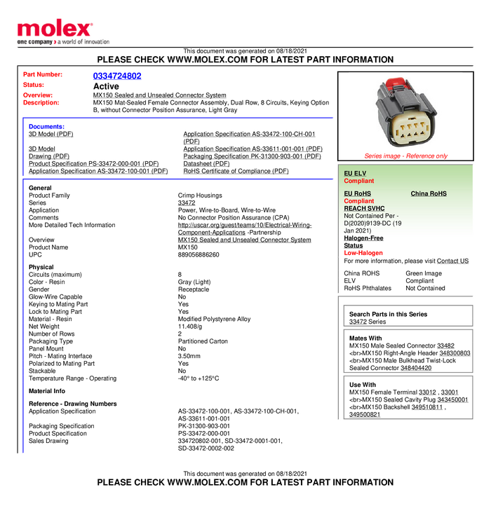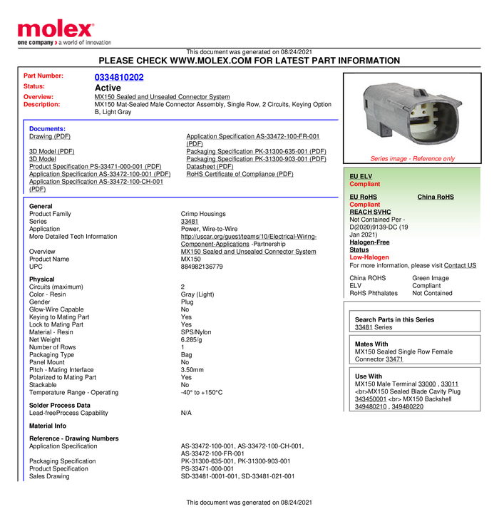 Złącze 334810202 Molex MOL Automotive jasnoszary Molex Zawartość: 1 szt.