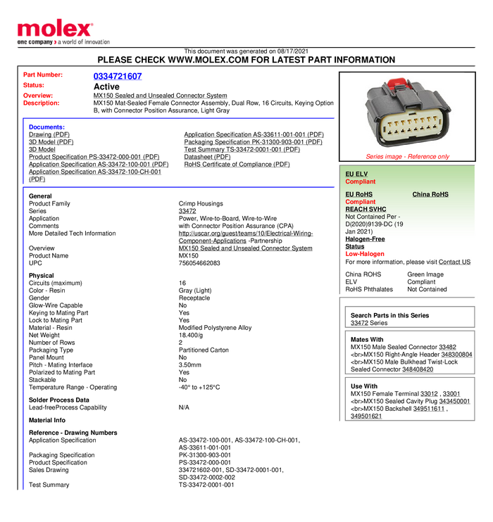 Złącze 334721607 Molex MOL Automotive jasnoszary Molex Zawartość: 1 szt.