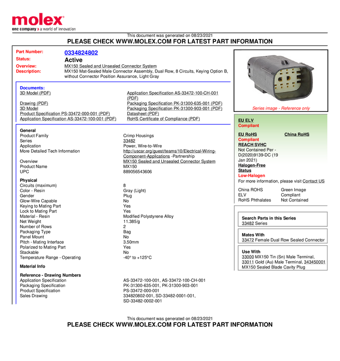 Złącze 334824802 Molex MOL Automotive jasnoszary Molex Zawartość: 1 szt.