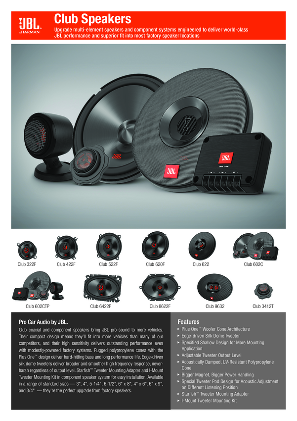 Głośnik samochodowy JBL Club 8622F, 180 W, 93 dB, 3 Ω, 2 szt.