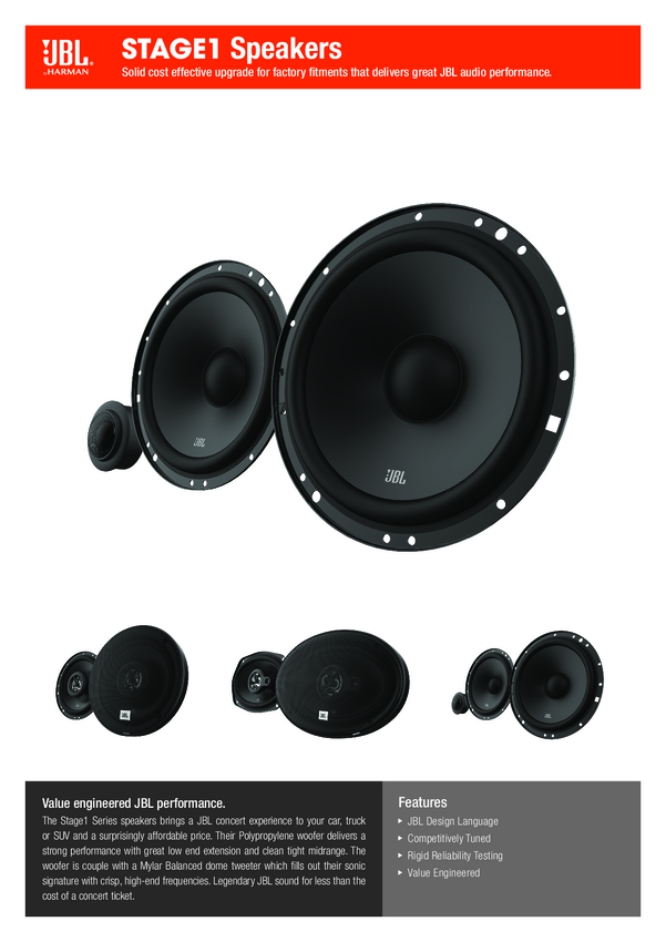 Głośnik samochodowy JBL Stage1 621, 175 W, 90 dB, 4 Ω, 1 zest.