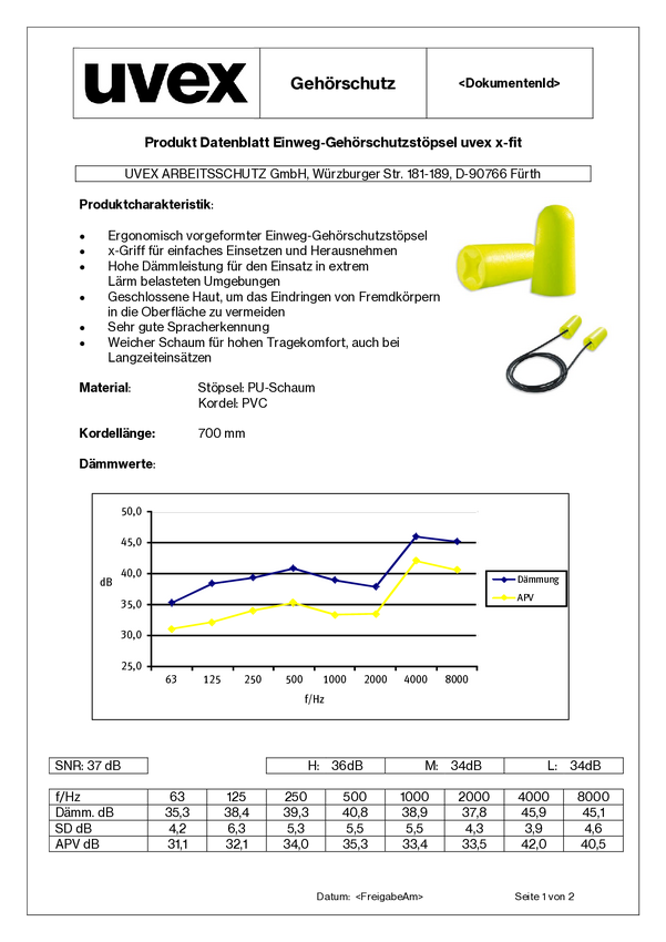 uvex 2112011 x-fit detec Zatyczki do uszu 37 dB jednorazowa 100 par(a)