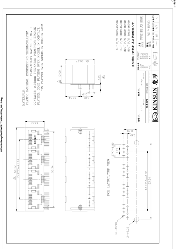 Listwa jednorzędowa, , 8-stykowycj, styki 6μ" Au