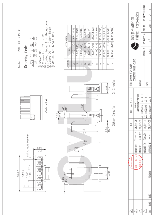 Korpus złącza żeńskiego, 3 stykowego, jednorzędowego, 1x3, CviLux