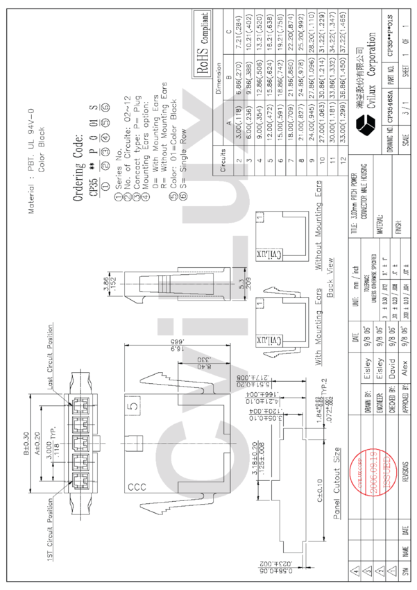 Korpus złącza męskiego, jednorzędowe 2-stykowe, 1x2, Cvilux