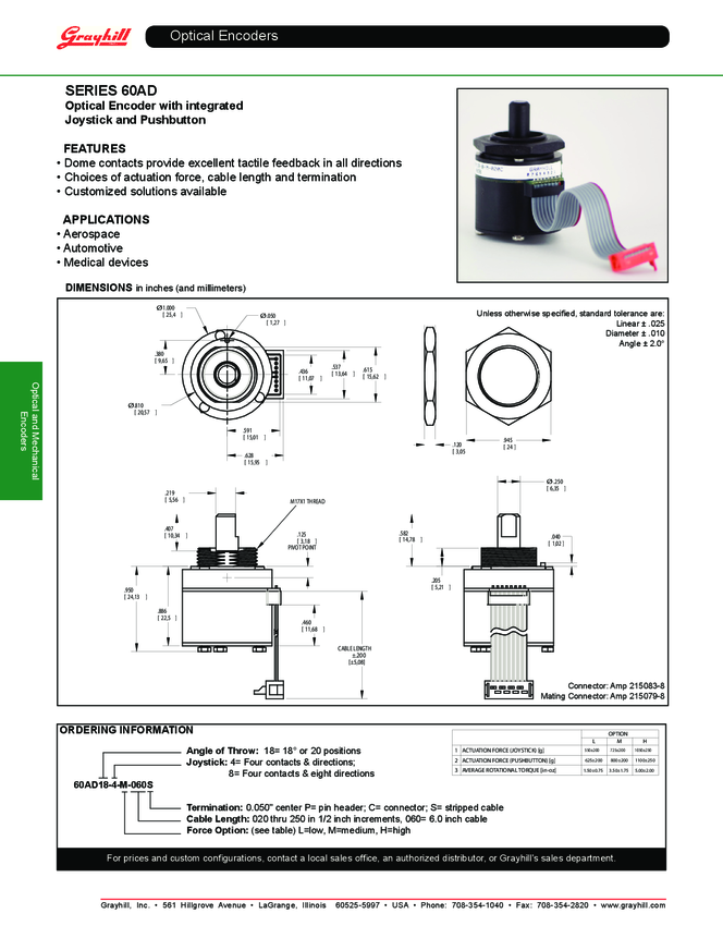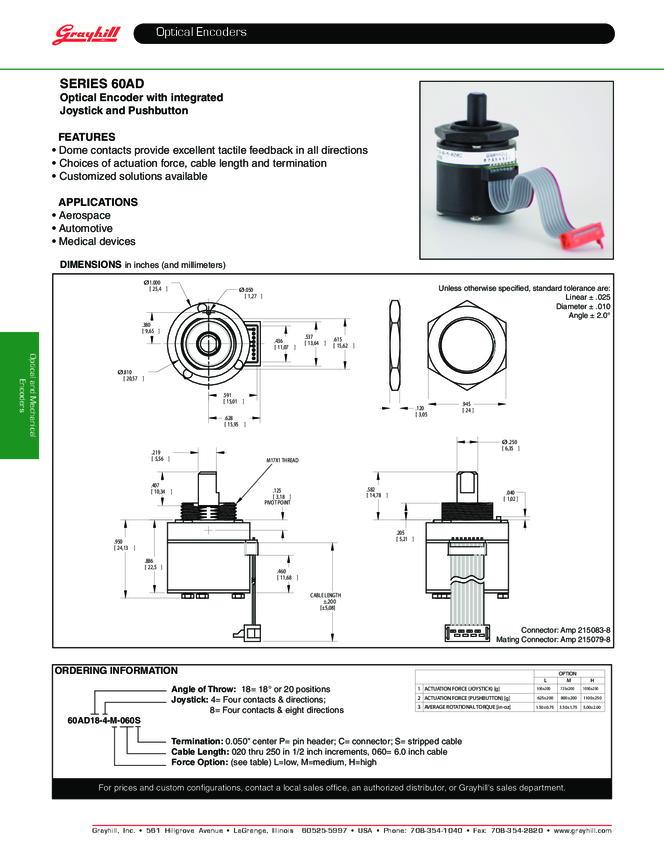 Joystick and Pushbutton Optical Encoder 8-Pin