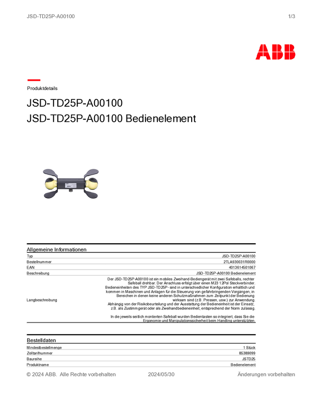 ABB 2TLA930031R0000 Urządzenie ręczne JSD-TD25P-A00100 1 szt.