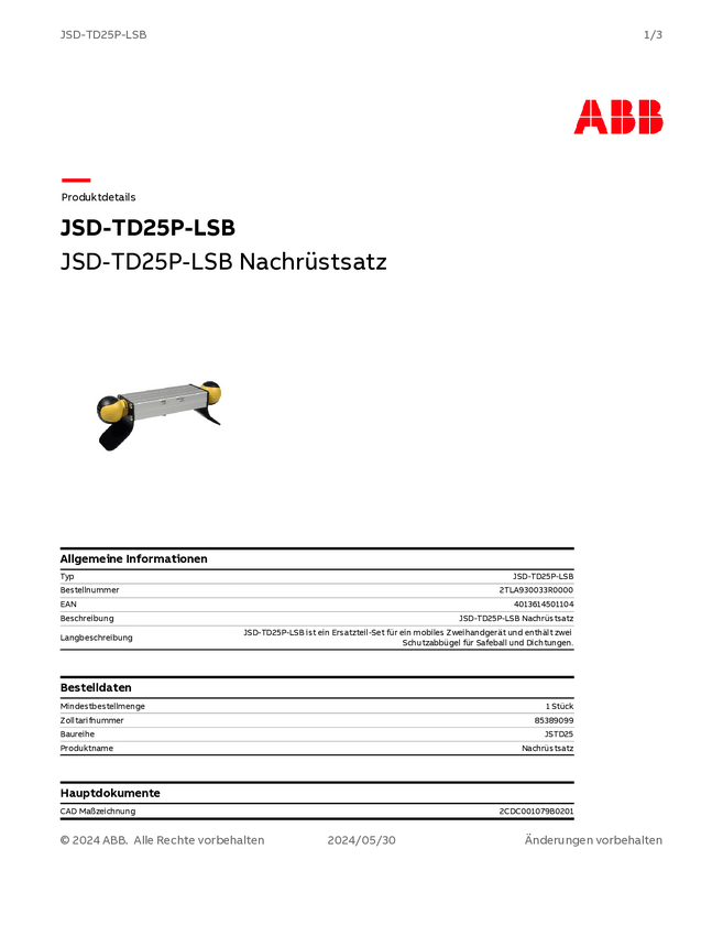 ABB 2TLA930033R0000 Zestaw modernizacyjny JSD-TD25P-LSB 1 szt.