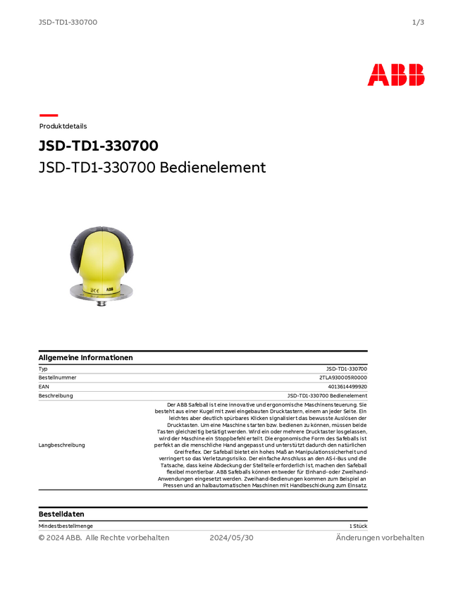 ABB 2TLA930029R0000 Urządzenie ręczne JSD-TD25P-820700 1 szt.