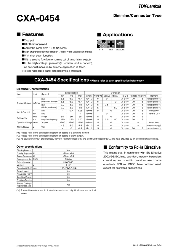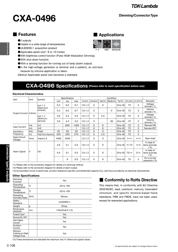 Input Voltage 10,8-13,2 V DC; output Voltage 1700 V; 4 lampy Output Current 6,5-4,2mA; Akarm Signal, Shat down SM02B-BHSS-1-TB SM02(4) B-BHS-1-TB JST;Input Fuse; Remote;