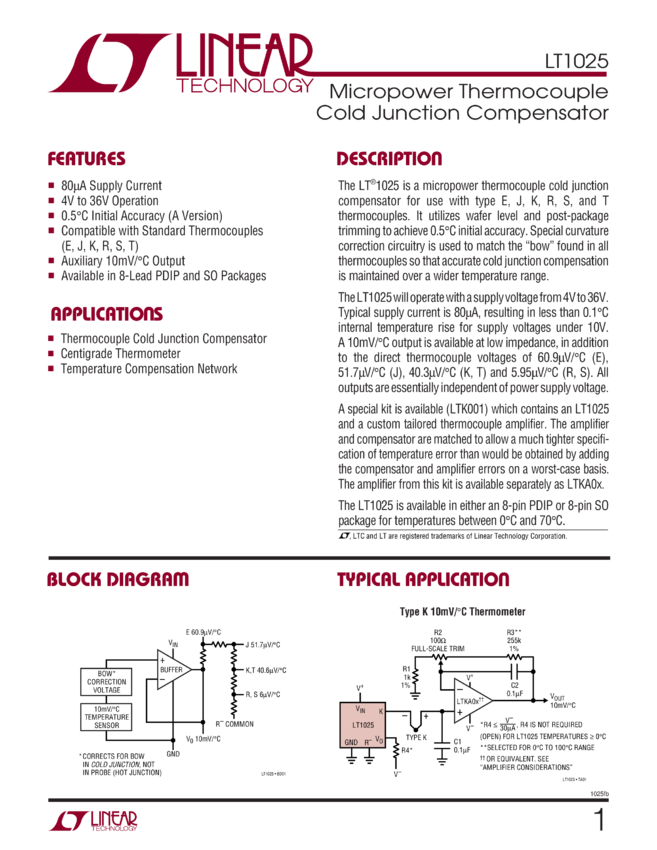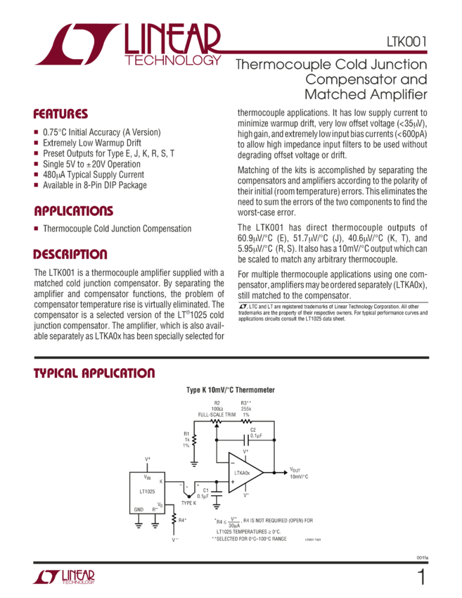 Thermocouple Cold Junction Compensator and Matched Amplifier