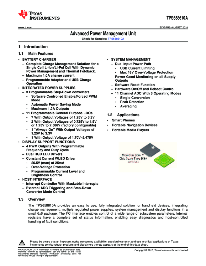 Power Management 120-Pin BGA MICROSTAR JUNIOR