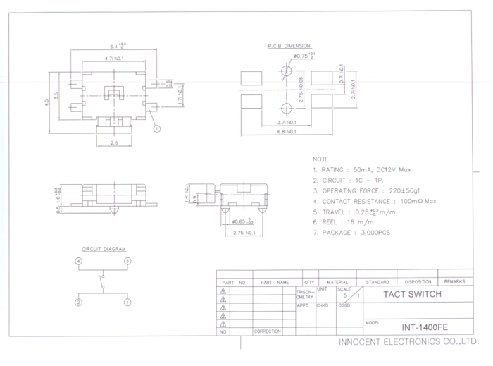 Łącznik Tact Switch, kątowy, , o sile nacisku 160gf, EMBO, do montażu SMD