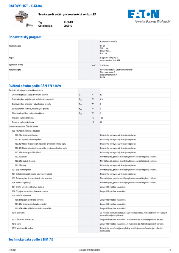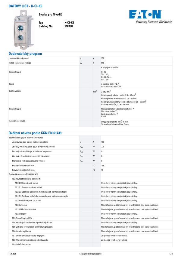 Zacisk przewodu neutralnego Eaton K-CI-K1/2 1 szt.