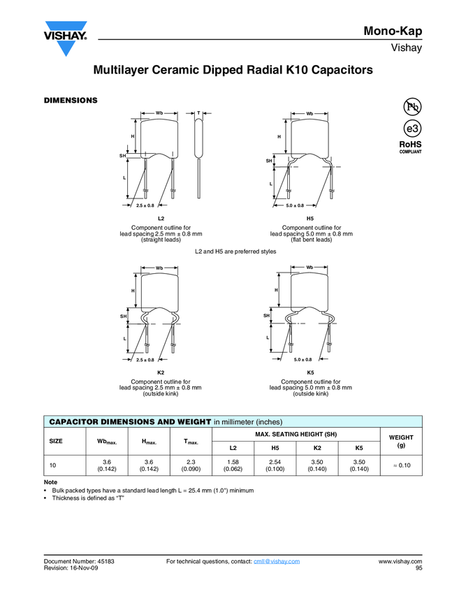 Cap Ceramic 0.01uF 50V Y5V -20% to 80% Radial 5mm 85°C Bulk
