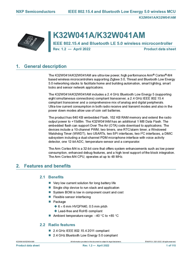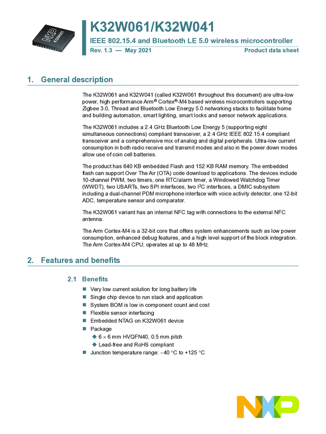 High Performance and Ultra-Low-Power MCU for Zigbee®,Thread, and Bluetooth LE 5.0 with Built-in NFC option