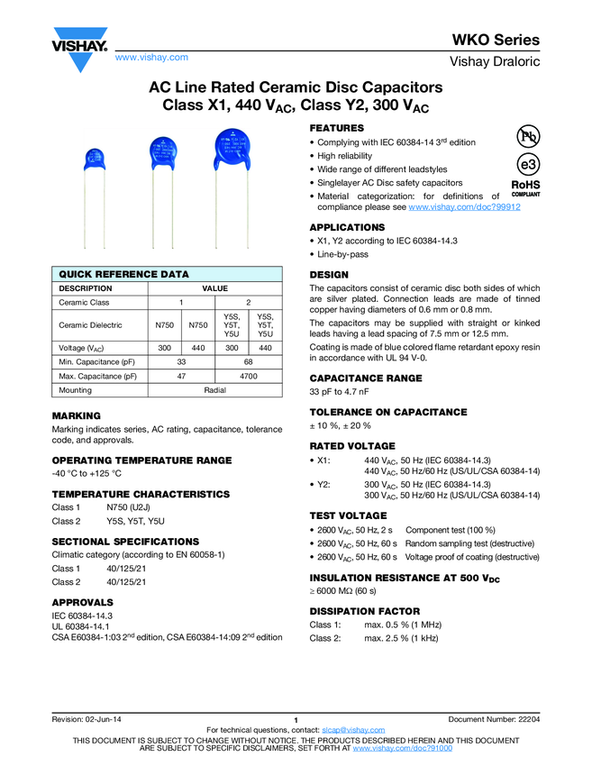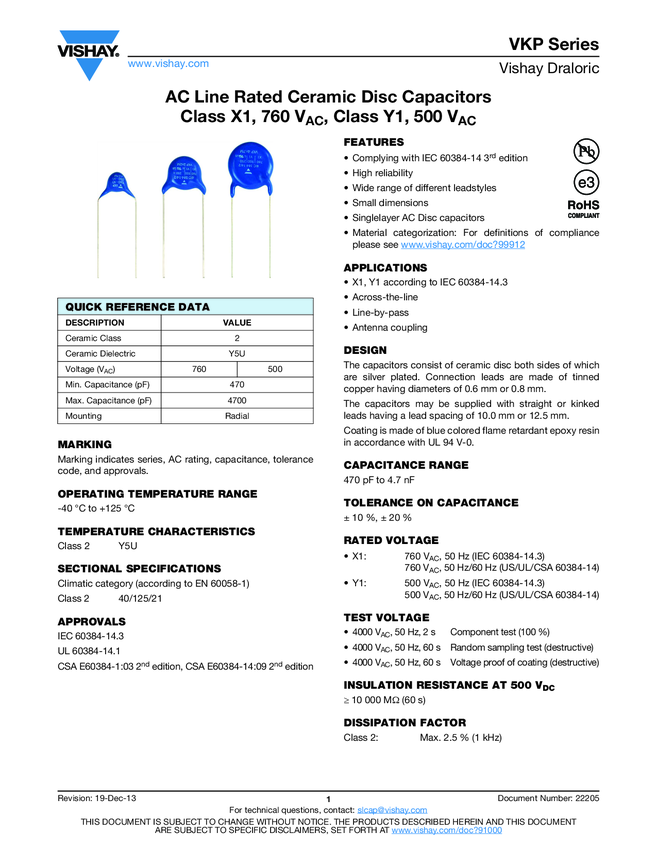 Cap Ceramic 0.0022uF 760VAC/500VAC K4000 20% (13 X 6mm) Radial 12.5mm Bulk