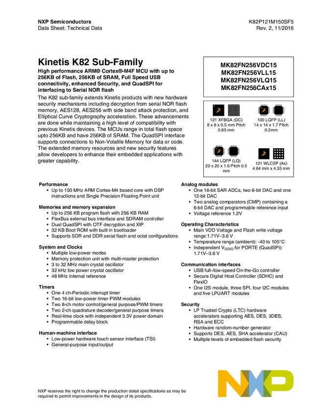Kinetis<sup>&#174;</sup> K82-150 MHz HW Cryptographic Co-Processor and QuadSPI Microcontrollers (MCUs) Based on Arm<sup>&#174;</sup> Cortex<sup>&#174;</sup>-M4 Core