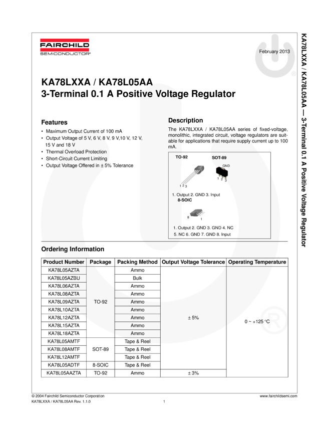 3-Terminal 0.1A 5V Positive Voltage Regulator
