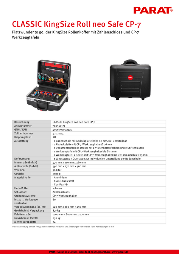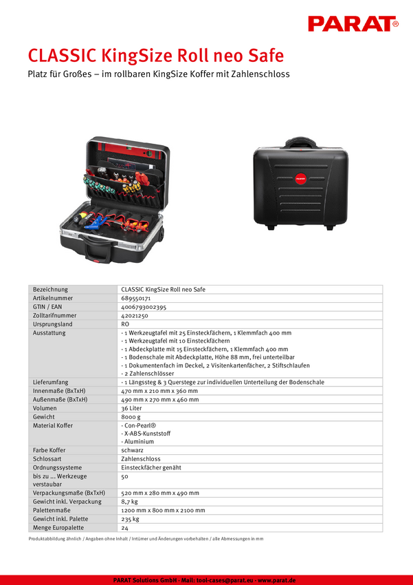 Walizka narzędziowa na kółkach bez wyposażenia Parat CLASSIC KingSize Roll neo Safe CP-7 789550171
