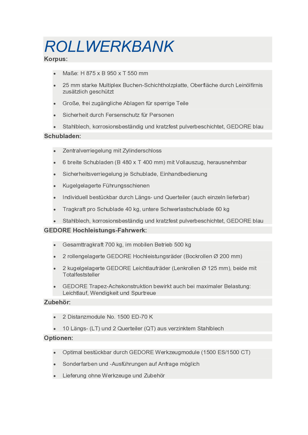 1502 - Stół warsztatowy na kółkach 6 szuflad 875x950x550mm Gedore 6620540, (S x W x G) 950 x 870 x 550 mm