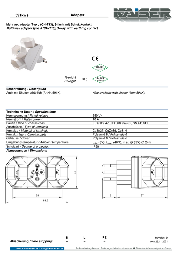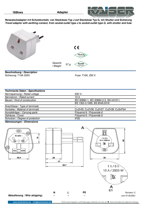 Adapter podróżny Martin Kaiser 168/kws Zestaw 1 szt.