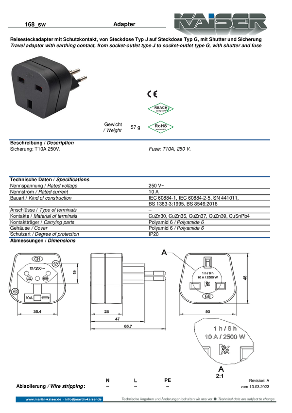 Adapter podróżny Martin Kaiser 168/sw Zestaw 1 szt.