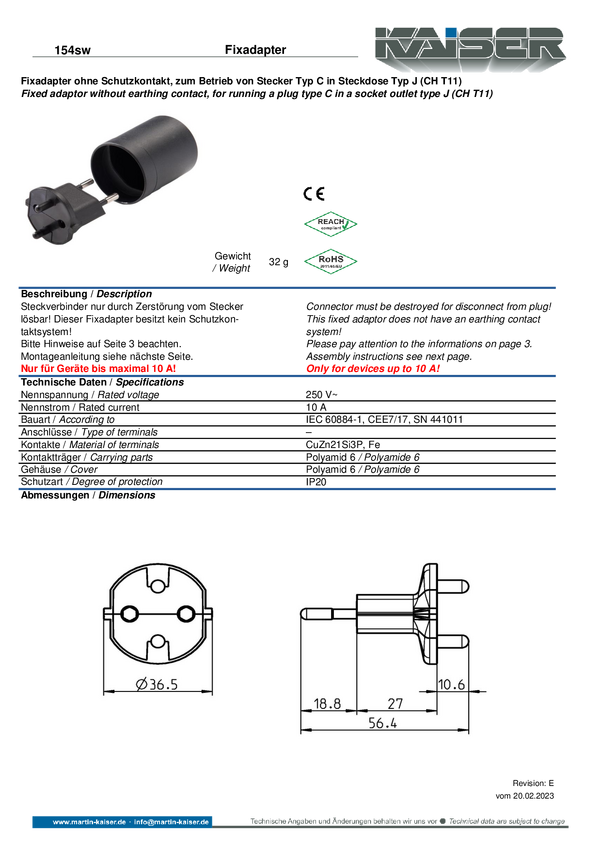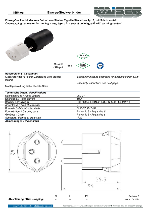 Adapter podróżny Martin Kaiser 156/kws/1 Zestaw 1 szt.