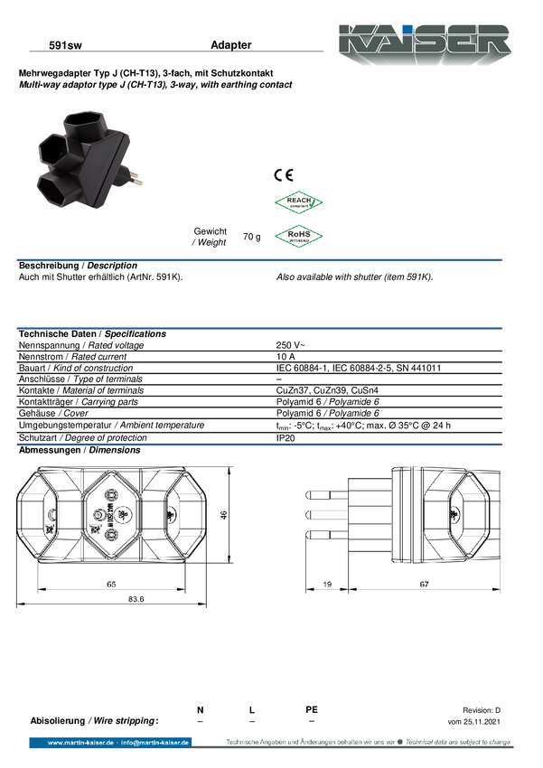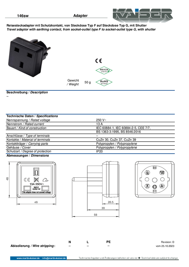 Adapter podróżny Martin Kaiser 146/sw Zestaw 1 szt. 146/sw