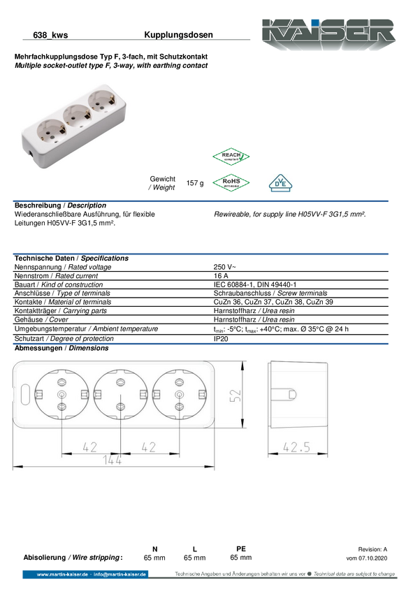 Wielokrotne gniazdo sprzęgające Martin Kaiser 638/kws, IP20