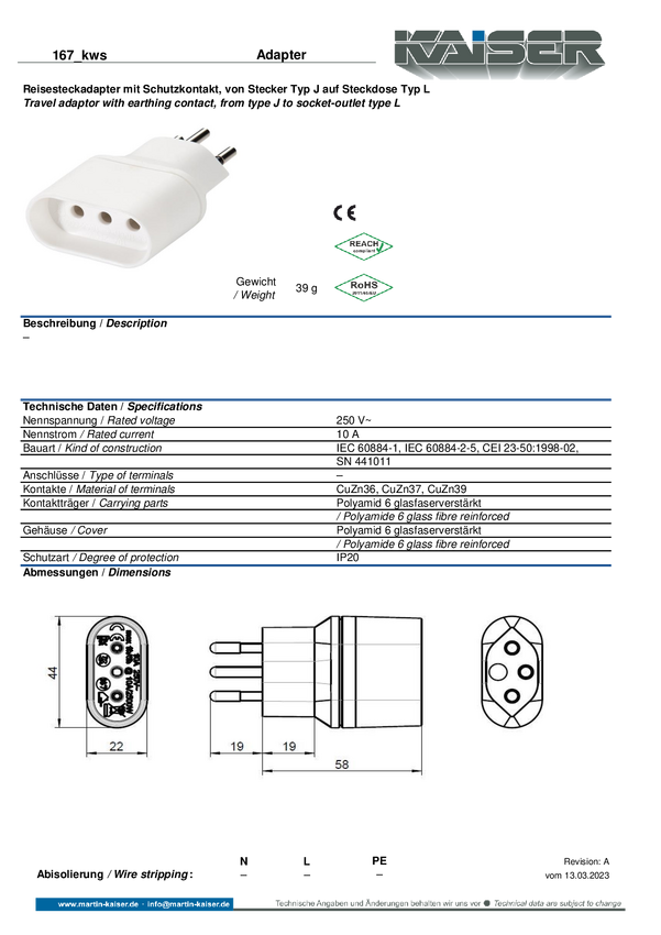 Adapter podróżny Martin Kaiser 167/kws Zestaw 1 szt.