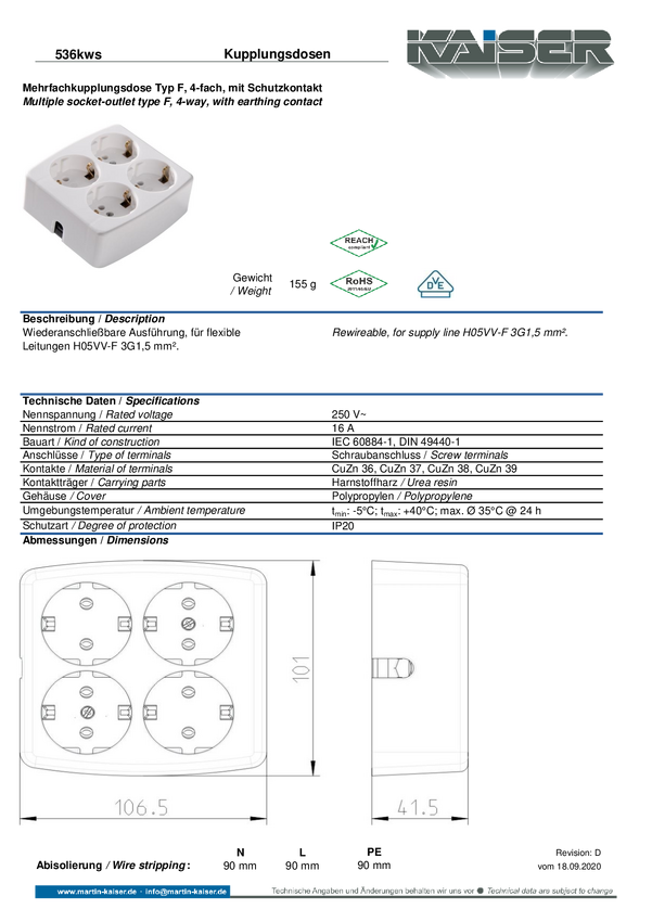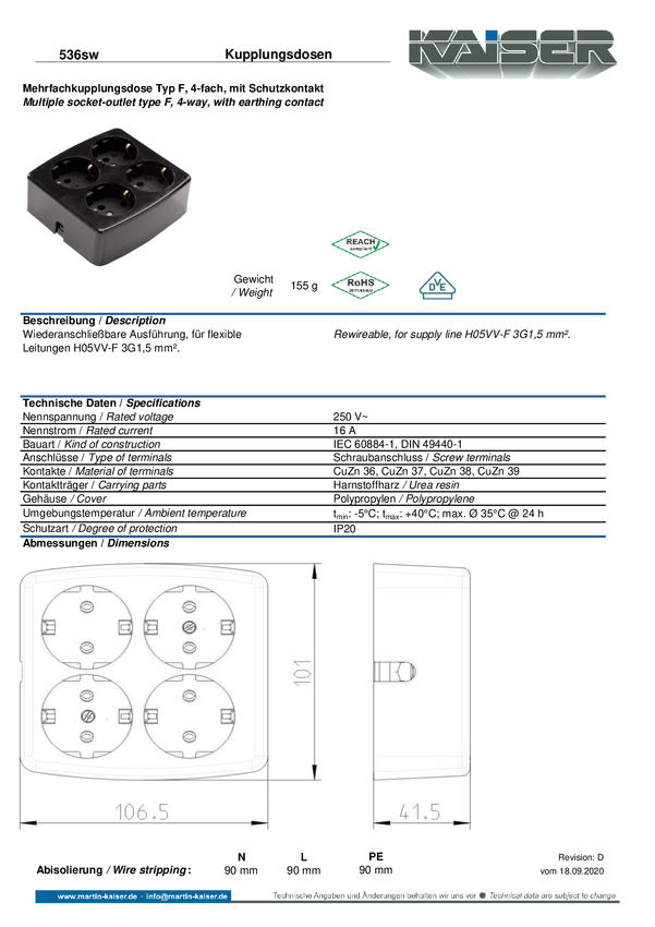 Wielokrotne gniazdo sprzęgające Martin Kaiser 536/kws, IP20