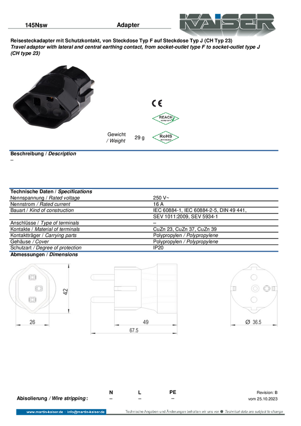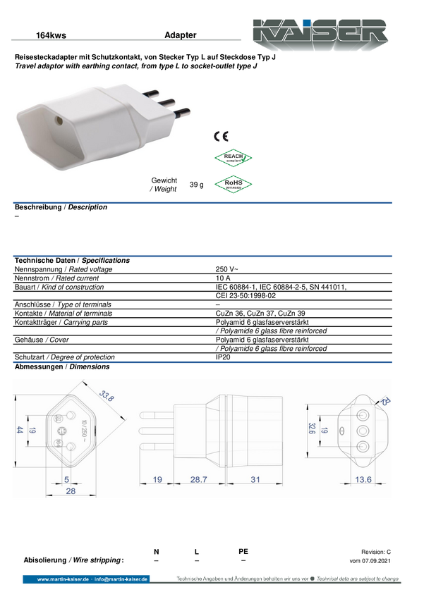 Adapter podróżny Martin Kaiser 164/kws Zestaw 1 szt.