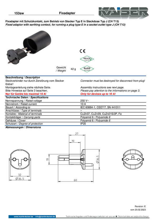 Adapter podróżny Martin Kaiser 153/sw/1 Zestaw 1 szt.