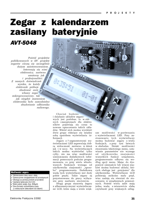 AVT5048 Zegar z kalendarzem zasilany bateryjnie