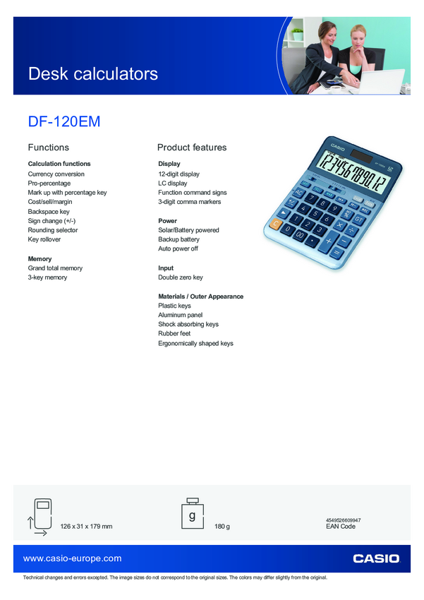 Casio DF-120EM Kalkulator stołowy niebieski Wyświetlacz: 12 energią słoneczną (D x S) 126 mm x 179 mm