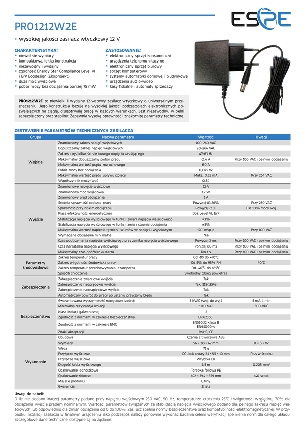 Zasilacz wtyczkowy do kamer 12V 1A | 2,1x5,5mm
