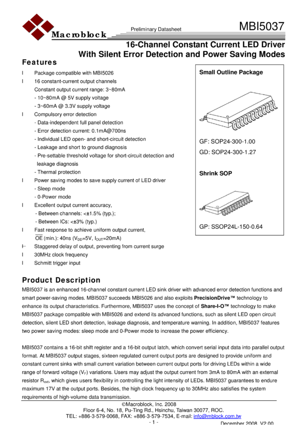 16-kanałowy LED driver, 10-80mA/5V, 3-60mA/3.3V, SOP24L/30szt