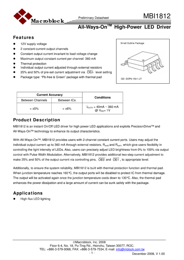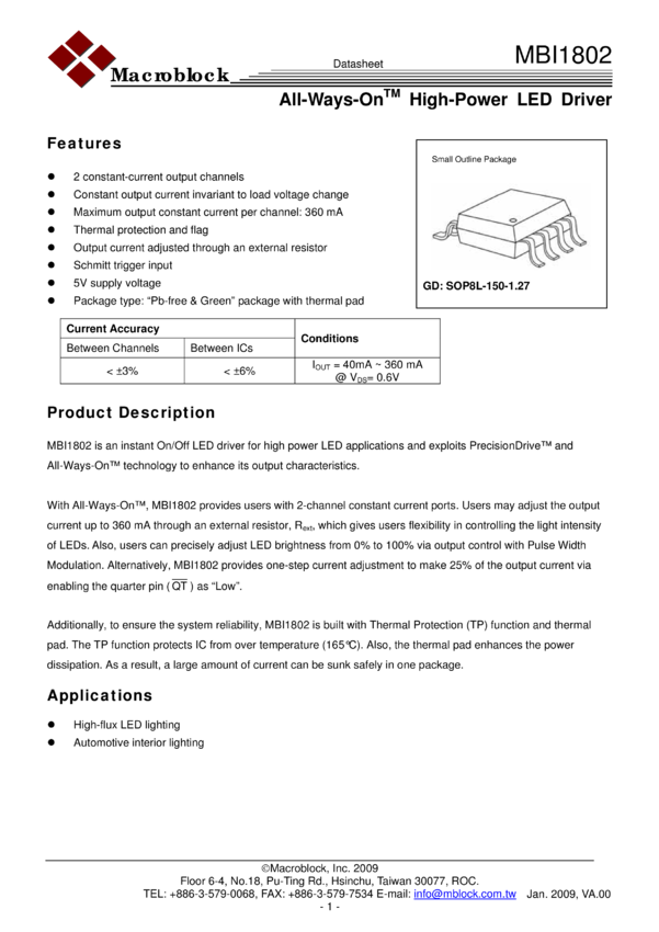 2-kanałowy ON/OFF High-Power LED Driver, 40-360mA, SOP 8L/100szt.