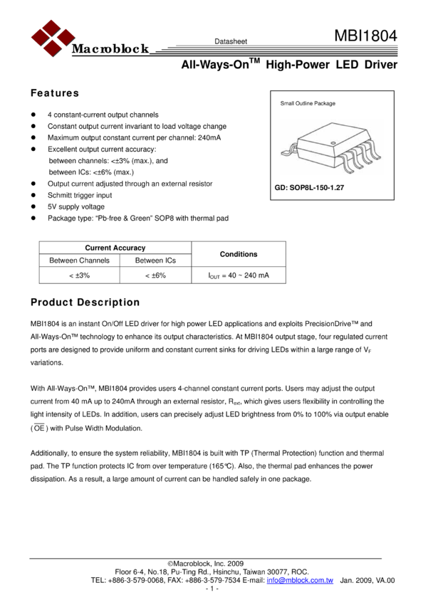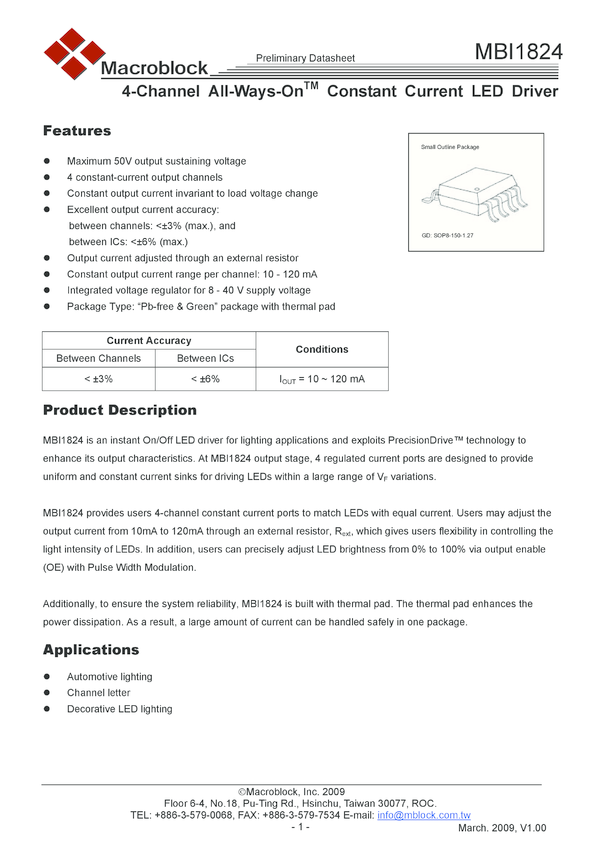 4-kanałowy ON/OFF High-Power LED Driver (40-240mA), SOP 8L/100szt.